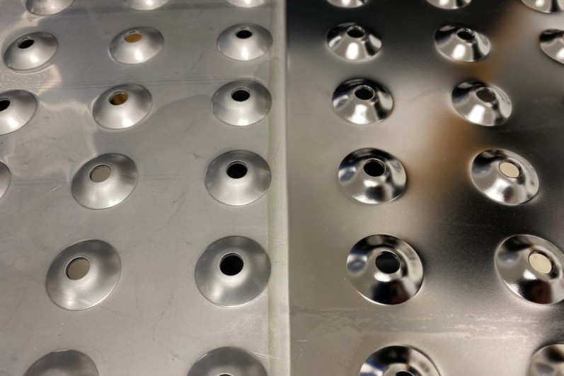 กระบวนการเคลือบผิวโลหะที่ใช้กระแสไฟฟ้าในการลบออกเฉพาะชั้นผิวของโลหะ โดยมักถูกใช้กับโลหะที่มีความหนาแน่นสูง เช่น สแตนเลส เพื่อเพิ่มความเงาของสแตนเลส โดยกระบวนการนี้จะทำให้สแตนเลสดูสม่ำเสมอและมีความสว่าง นอกจากนี้ยังช่วยเพิ่มความคงทนต่อการสกปรกและการกัดกร่อนของสแตนเลสด้วย